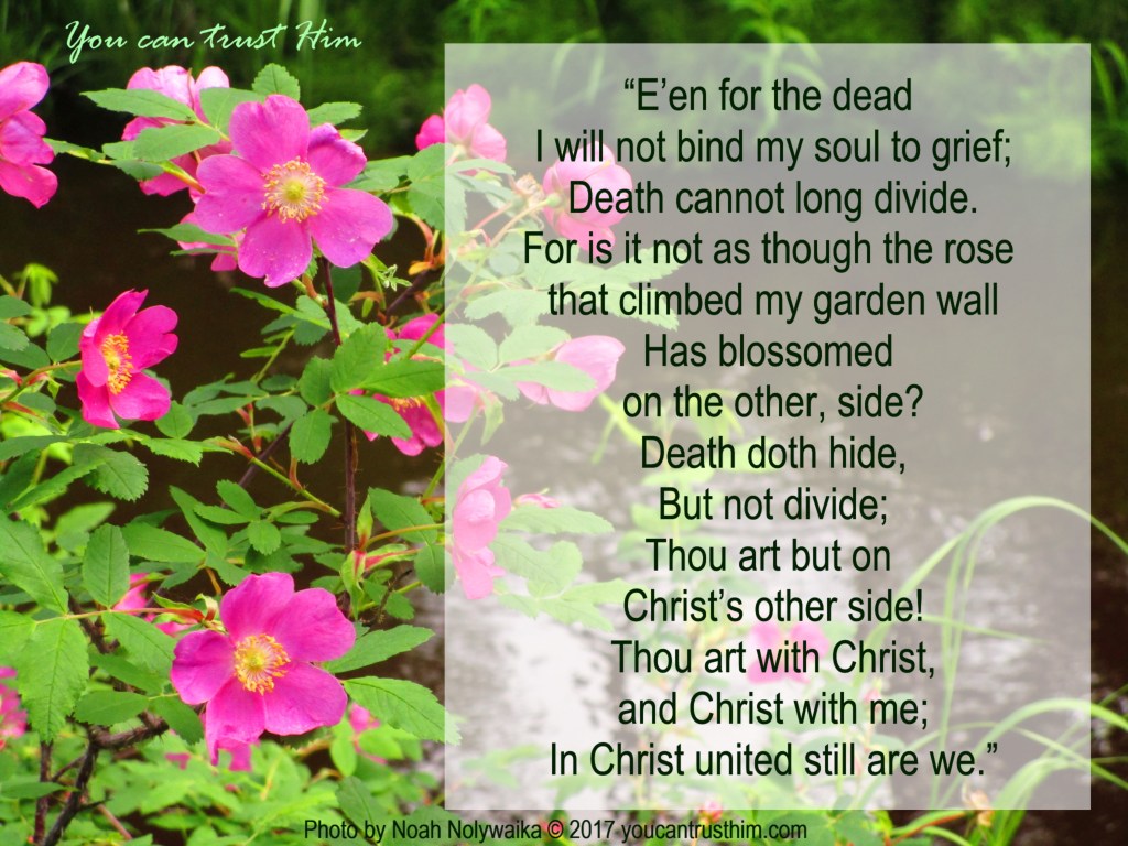 I love the idea of the Rose blooming on the Other Side. Just out of our vision, but REAL all the same. Praying for you as your approach the holidays again.