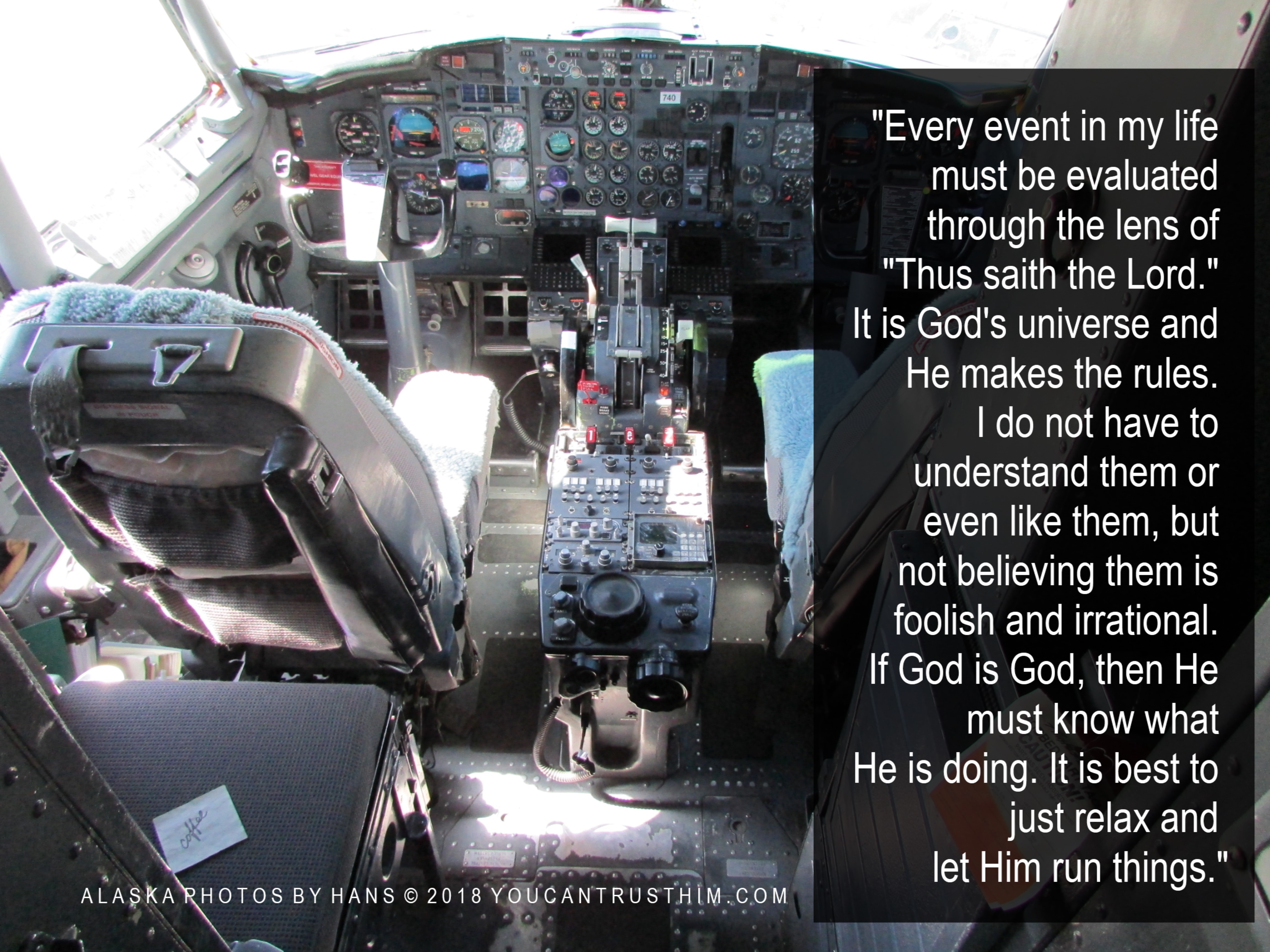 Every event in my life must be evaluated through the lens of “Thus saith the Lord.” It is God’s universe and He makes the rules. I do not have to understand them or even like them, but not believing them is foolish and irrational. If God is God, then He must know what He is doing. It is best to just relax and let Him run things.