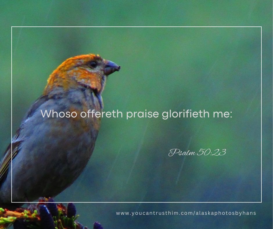 “Yet, how much we have to bless Him for, and what sweet encouragement is given to our gratitude by His assurance, ‘Whoso offereth praise glorifieth me!’ How often are we told, in His Word, that He takes delight in our thanksgivings and songs! The praise we render is dearer to Him than that of angels—for they cannot bless Him for redeeming love, for pardoned sin, and the blessed hope of resurrection glory.