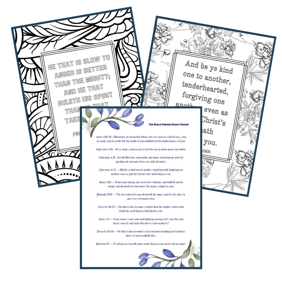 Included is a list of ten Bible verses that teach what God’s Word says about anger. Also included are two coloring pages, each with a verse of Scripture.